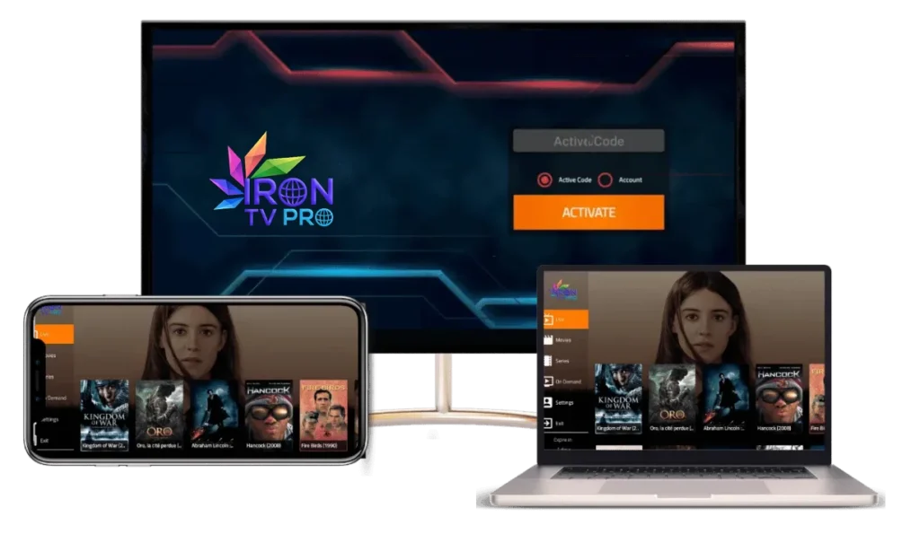 IRON TV PRO L’abonnement PREMIUM N°1 en Europe avec + 4 000 Chaines en Qualité 4K/Full HD/HD et + 8 000 films et séries 4K, Toute la Télé que vous Aimez en un Seul Abonnement 4K avec une Diffusion multi-écrans Sans coupures ni Tracas.